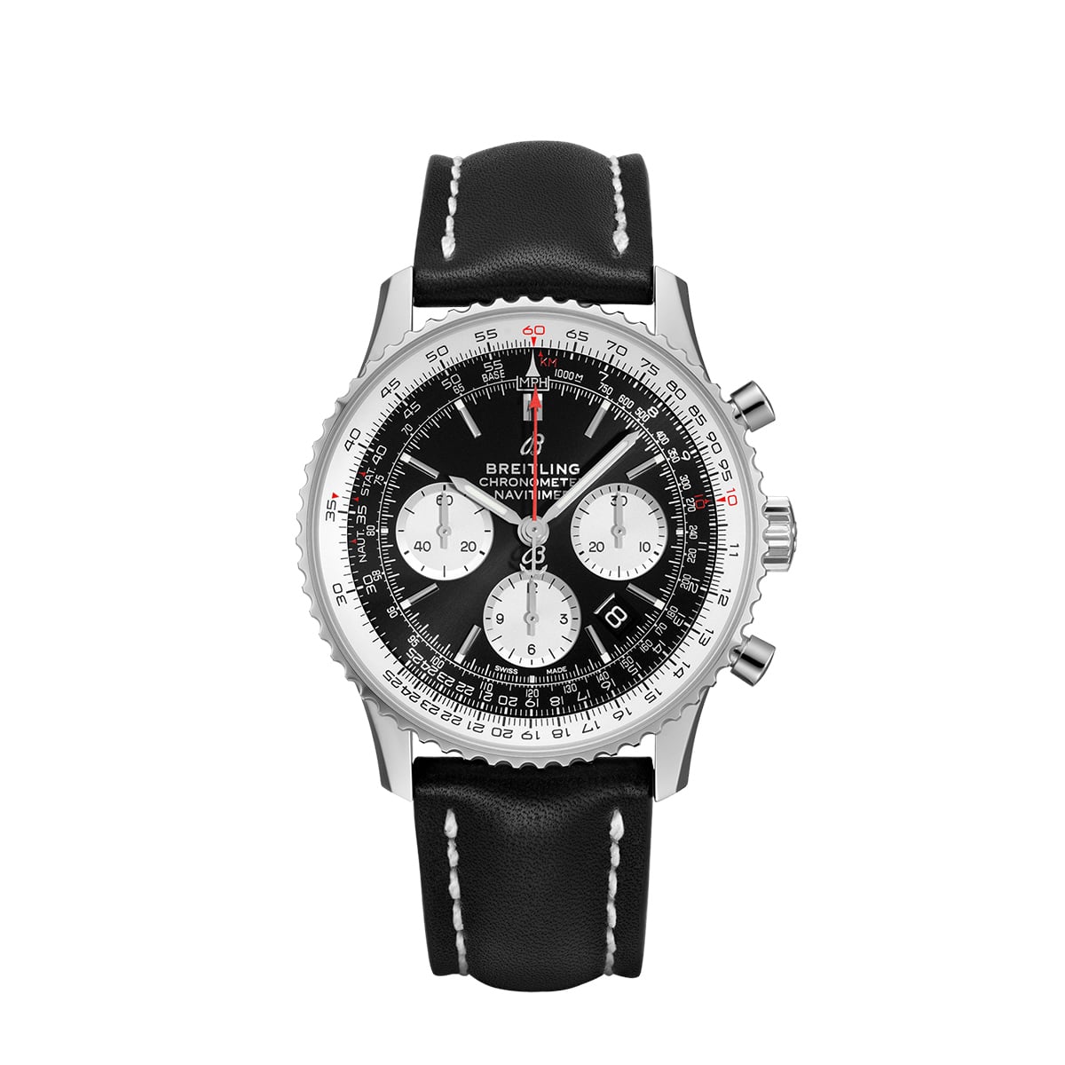 Breitling AB0121211B1X1 Navitimer B01 Chronograph 43mm Black Dial Watch with Breitling Papers, Store Box Pre-owned Stainless Steel Case Calfskin leather strap Self-winding mechanical Movement Water resistance: 3 bars
