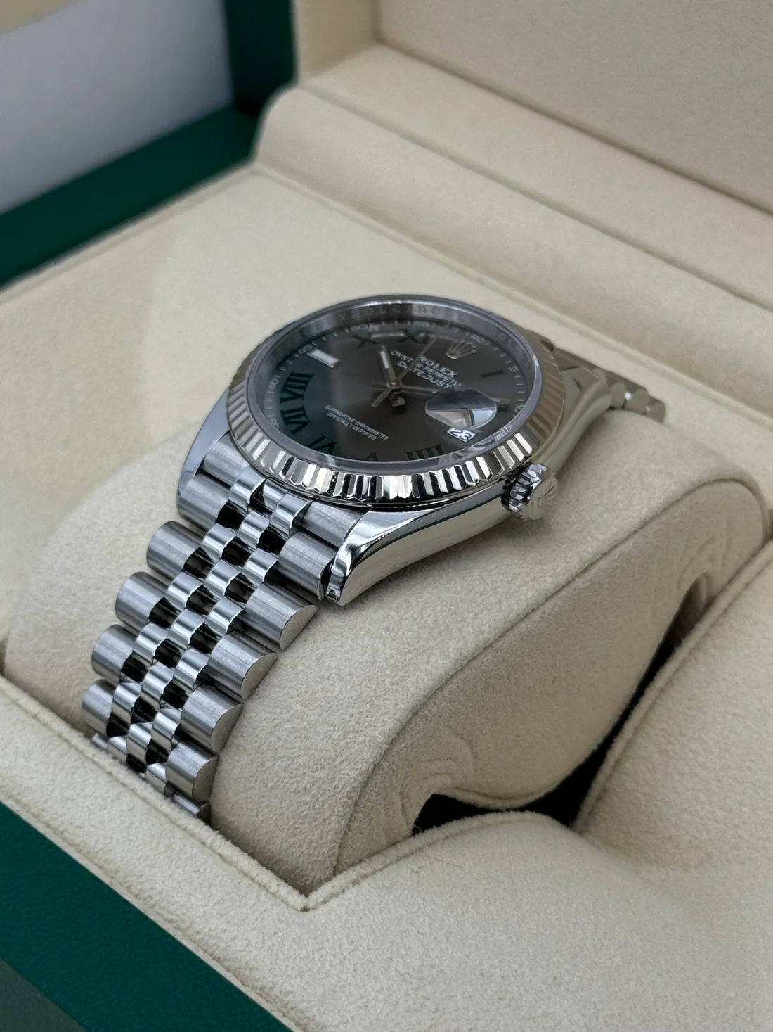 NEW 2025 Rolex Datejust 36mm 126234 Stainless Steel and 18K White Gold Fluted Bezel Jubilee Bracelet Wimbledon Dial
